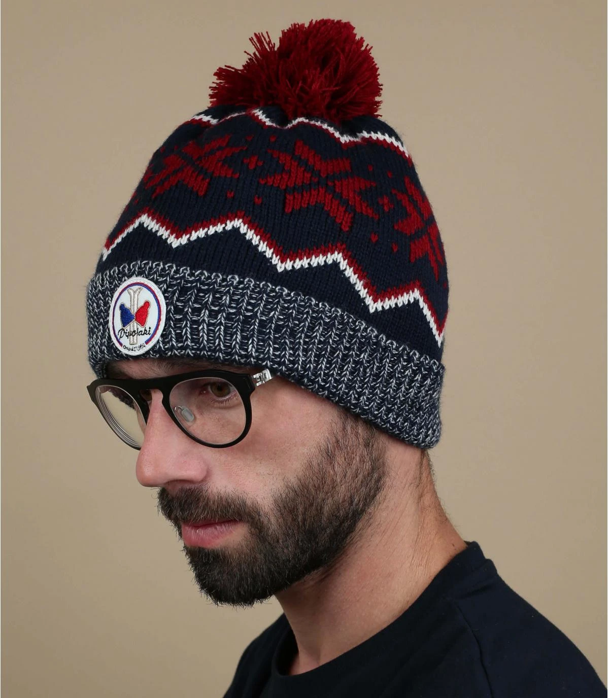 Ceux qui aiment les bonnets traditionnels adoreront ce joli modèle à revers de la marque française spécialisée Pipolaki, avec ses motifs colorés en rouge et blanc sur fond bleu marine. Il est intégralement doublé en polaire pour vous maintenir bien au chaud.